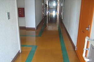 廊下は、木目調のナーシングフロア材を使用して明るく清潔感のあるイメージを意識しました。