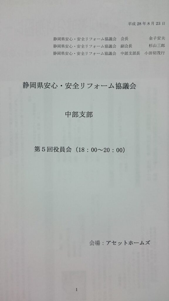 一社)静岡県安心安全リフォーム協議会中部支部の役員会でした